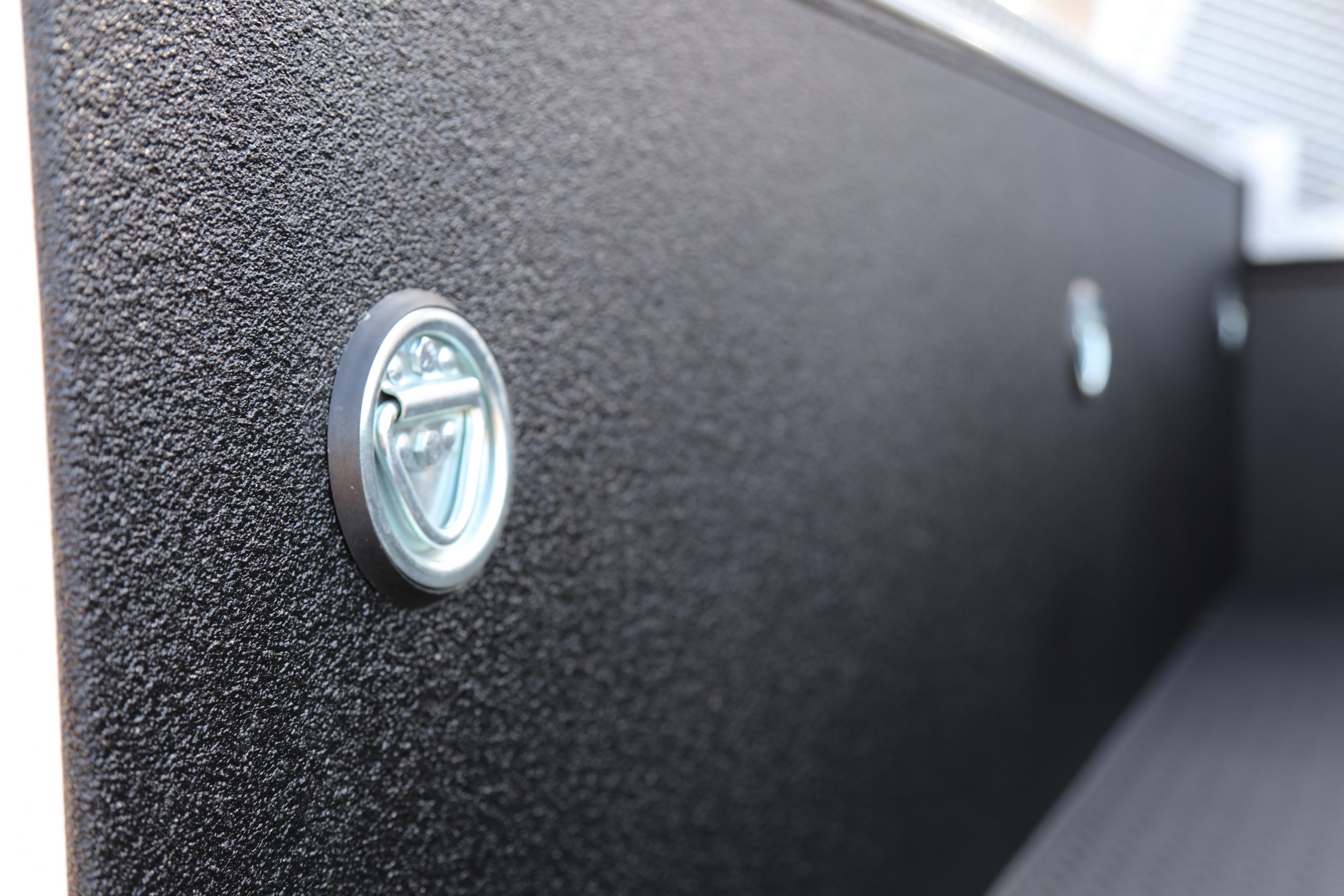 We have both heavy duty and light duty tie down options available to maximize your cargo control! Our light duty tie downs have 6000 lb capacity and are a recessed weld-in mount, while our light duty tie downs have a 1200 lb capacity and are flush wall mount.